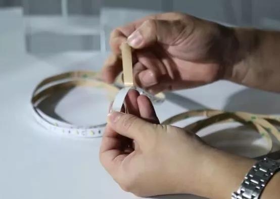 高壓燈帶,一般來說是1m一剪甚至2m一剪,記住不要從中間剪斷,否則整組燈都不會亮。假設(shè)我們只需要2.5m的燈帶,怎么辦呢?剪3m出來,然后把多余的半米折回去,或者用黑膠帶包住防止漏光,避免局部過亮的情況。